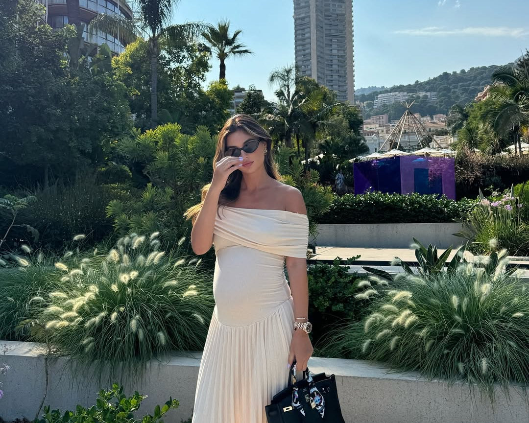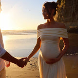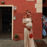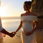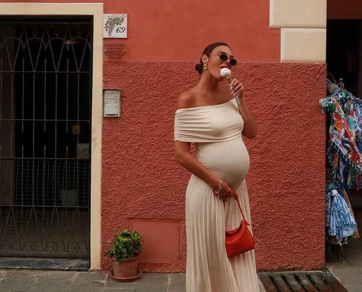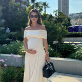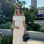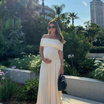 Wrap yourself in fluid charm with the Alianor Maternelle Grace Gown — a silhouette that celebrates new beginnings with poetic movement and thoughtful design. With its shoulder-baring neckline, flowing pleats, and sculpted waistline, this gown creates a serene profile that feels just right for maternity photoshoots, garden ceremonies, or twilight dinners under soft skies.