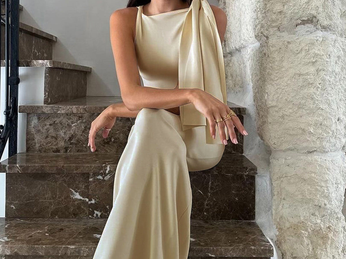 Minimalism meets allure in the Cecily Satin Gown — a refined piece designed to celebrate clean lines and quiet drama. With a sculptural knotted front and fluid drape, this dress is a masterclass in subtle statement-making. Perfect for evenings that call for poise and presence.