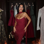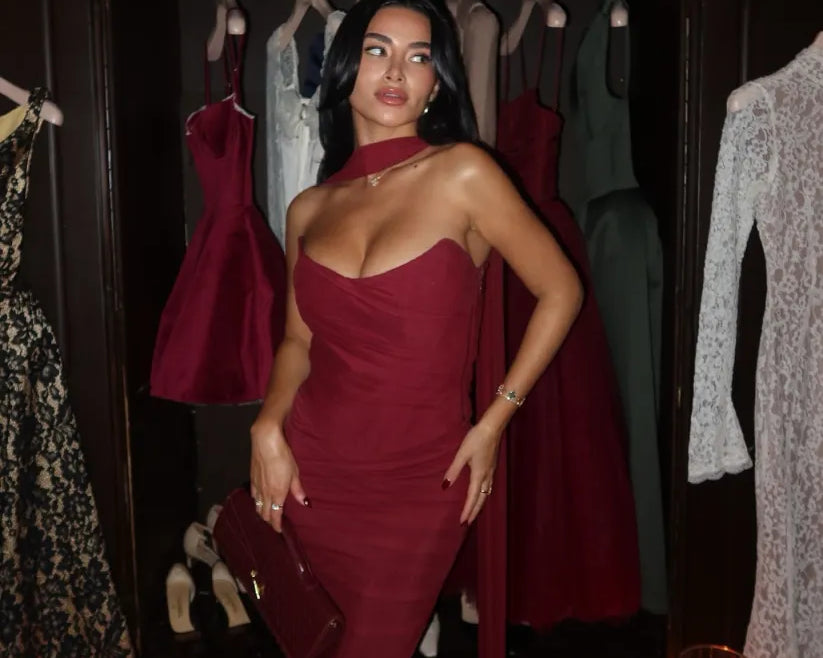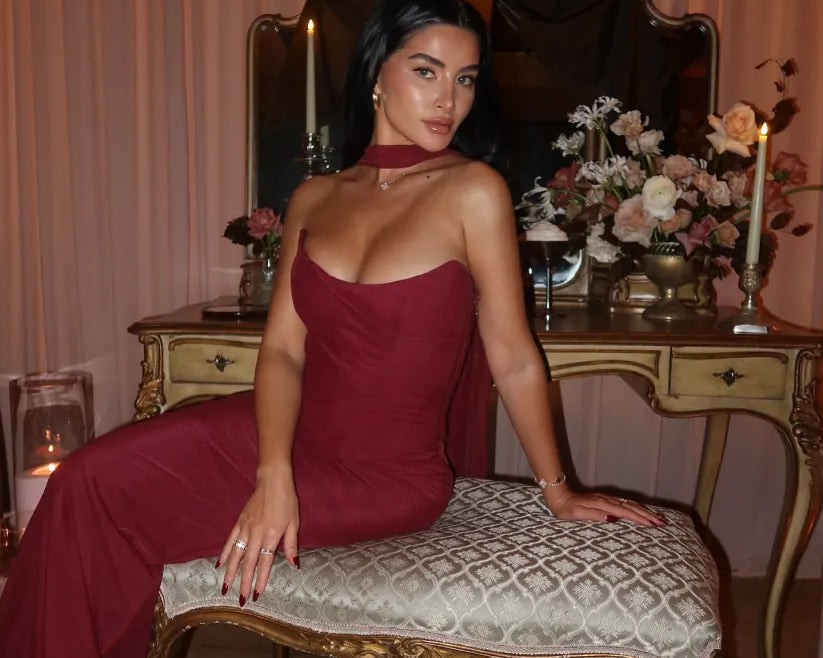 Cerynthia is crafted for evenings that deserve more than ordinary. Its strapless neckline frames the shoulders with grace, while the body-skimming maxi cut creates an elongated and confident profile. Designed with a timeless flow, this piece balances drama and restraint, making it your ultimate evening essential.