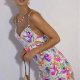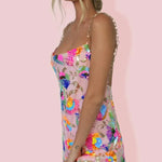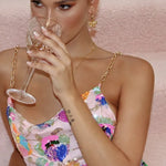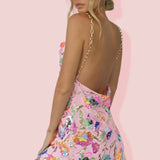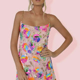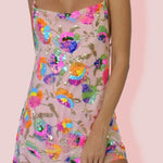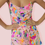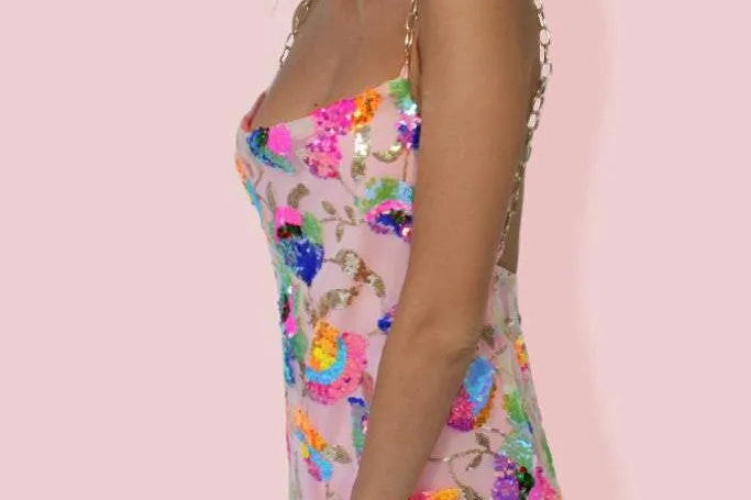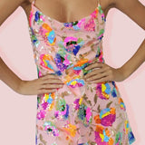 Ignite the room with the Clarimond Neon Flora Dress, a bold mini designed to captivate from every angle. With its radiant shimmer, daring open-back cut, and striking floral tones, this piece is a natural spotlight magnet. Made for nights that demand a little extra drama and a lot of sparkle.