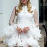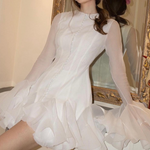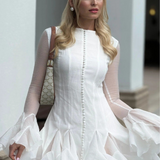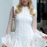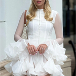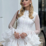 Dahlina is where softness meets statement. With its flattering mini cut, oversized sleeves, and ruffled hemline, it brings playful charm with just the right amount of drama. Designed to move with ease and catch every glance, this dress is perfect for moments that call for effortless femininity.