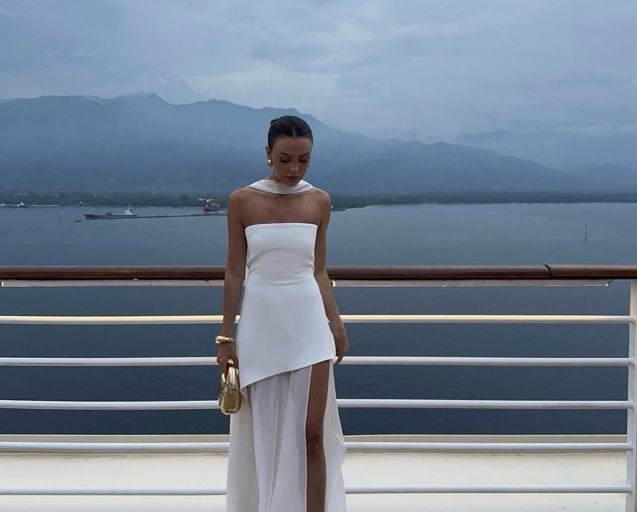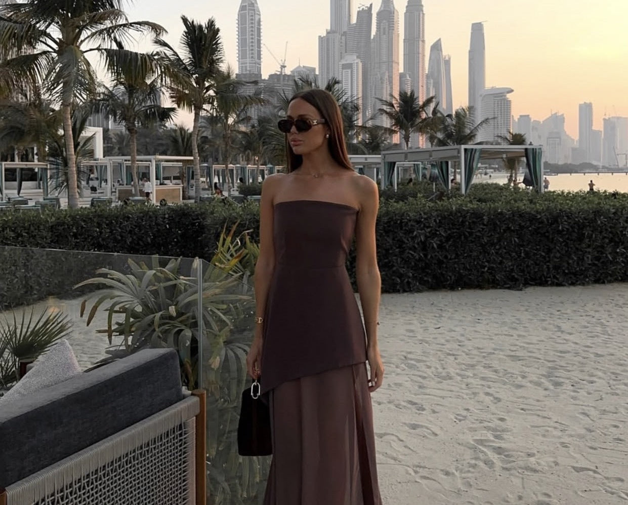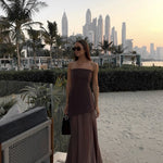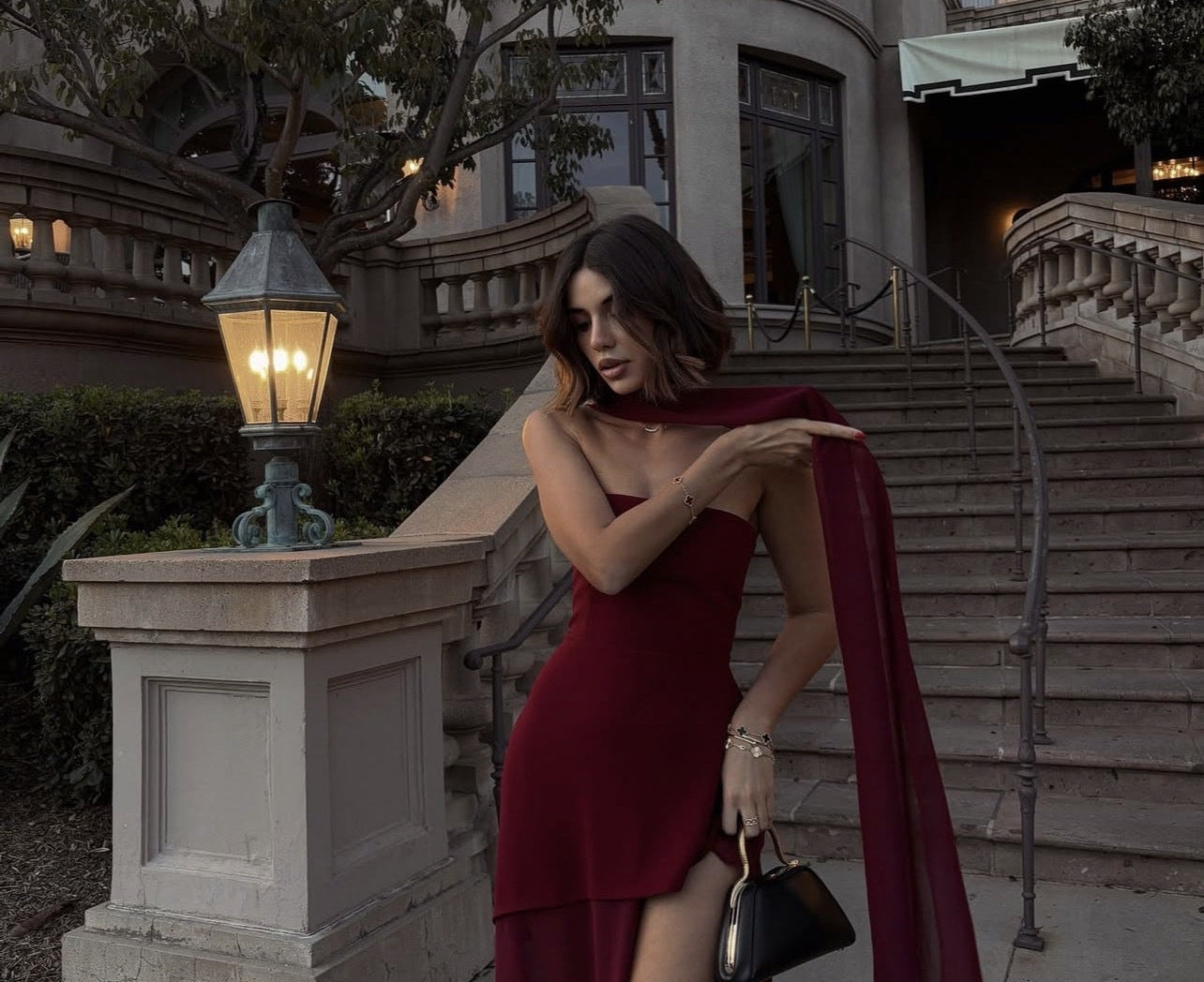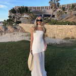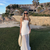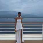 Innovative asymmetrical silhouette: The high-low design infuses a modern twist into the classic maxi dress, enhancing visual appeal and drama.