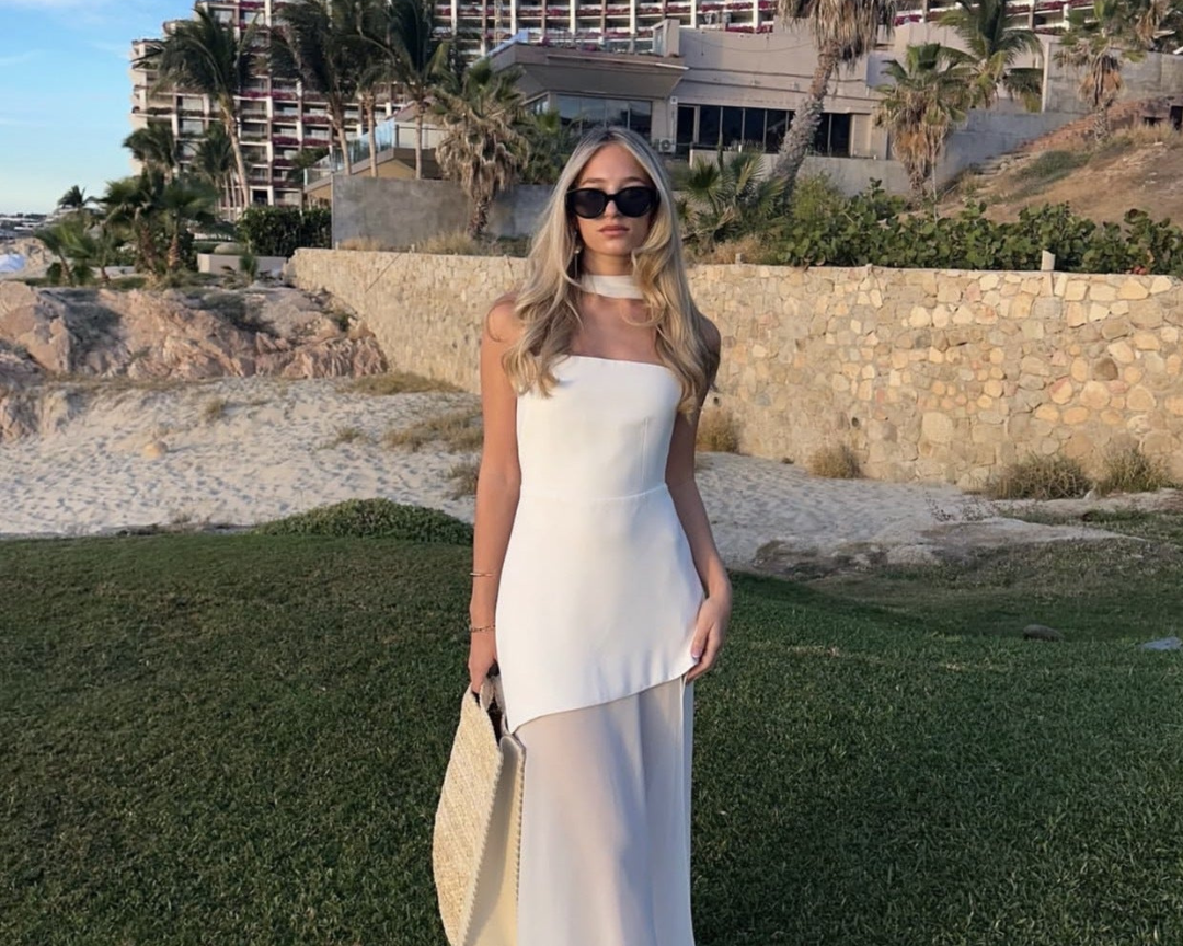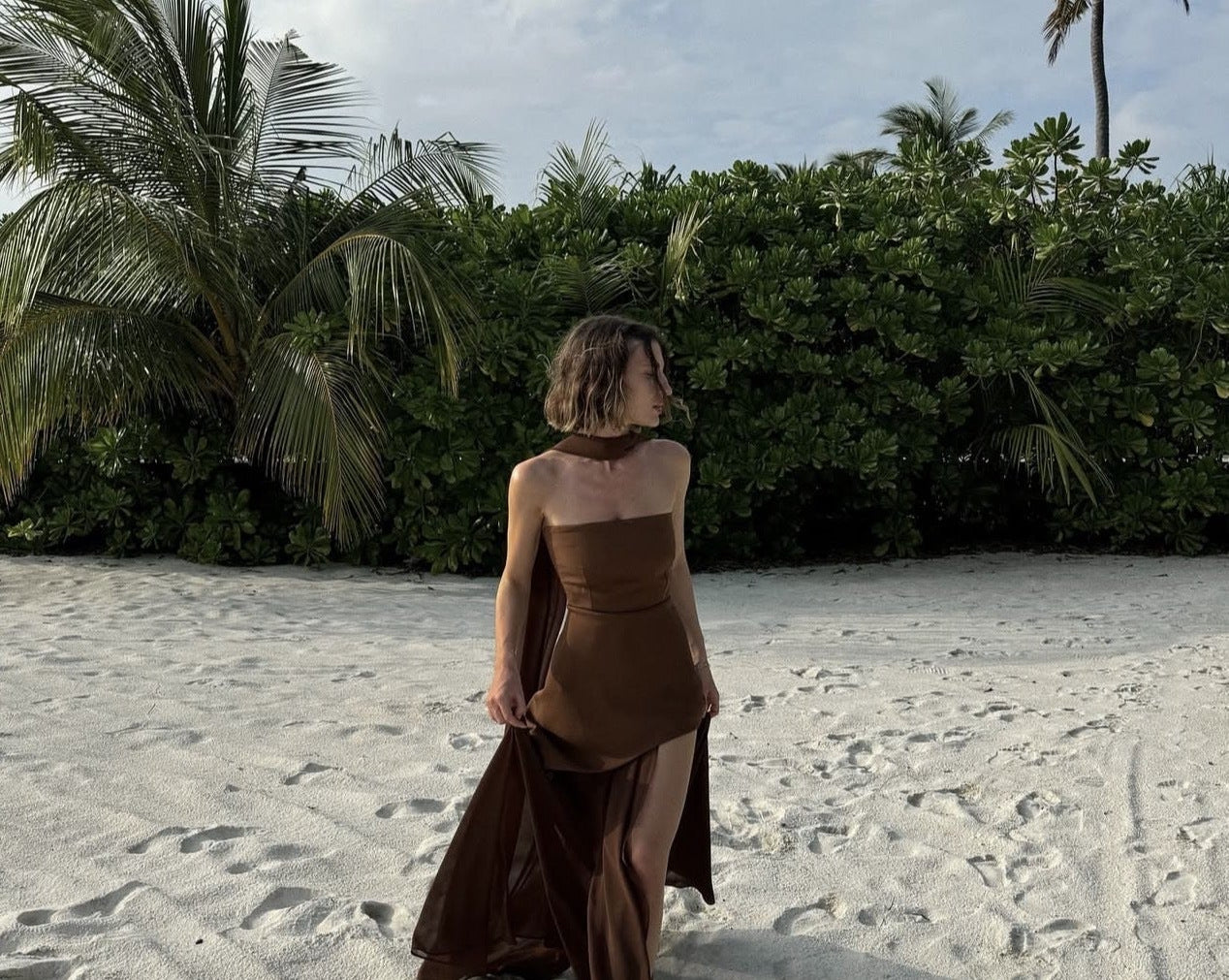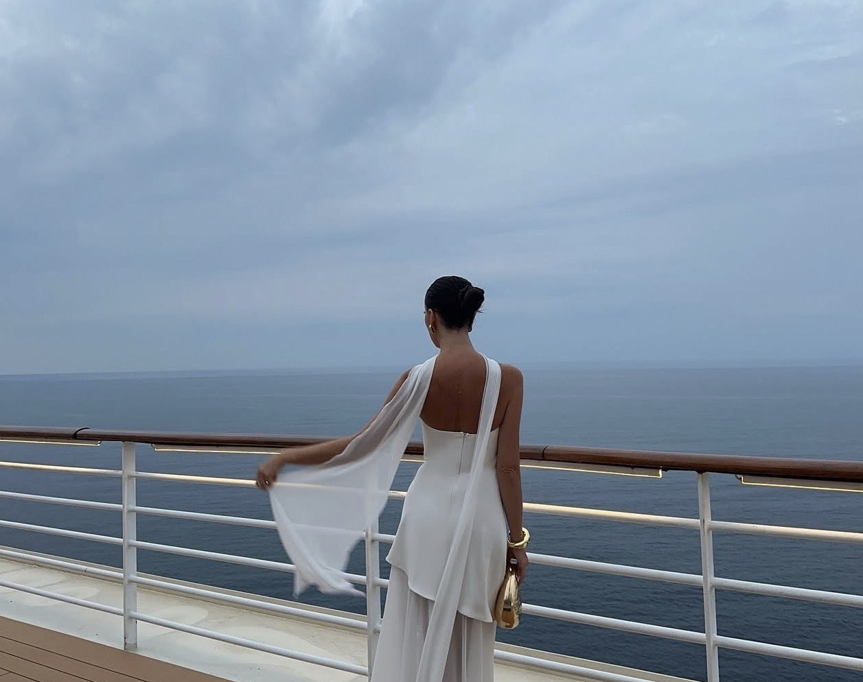 Innovative asymmetrical silhouette: The high-low design infuses a modern twist into the classic maxi dress, enhancing visual appeal and drama.