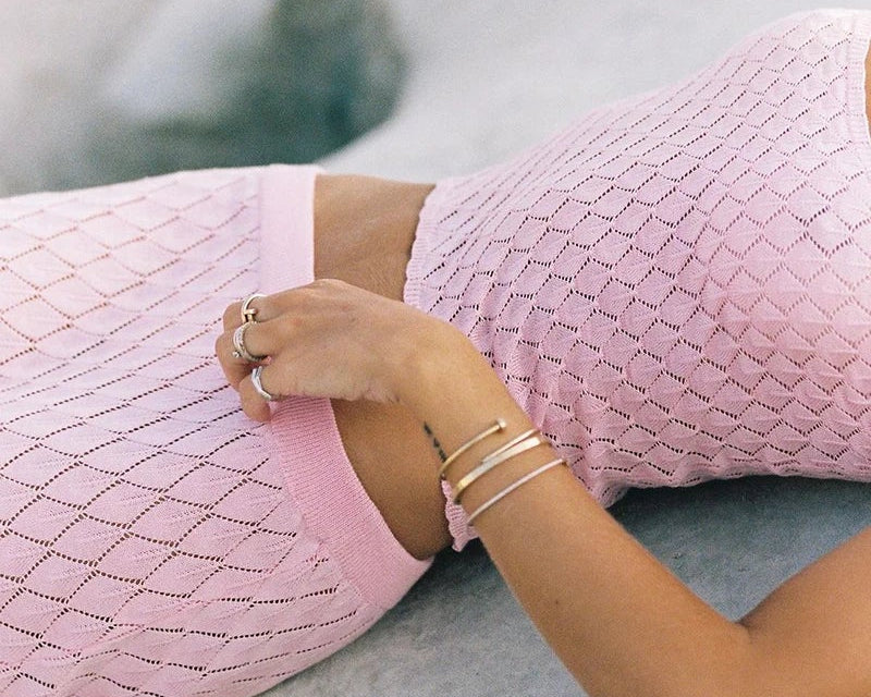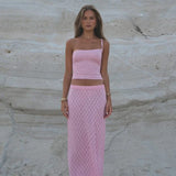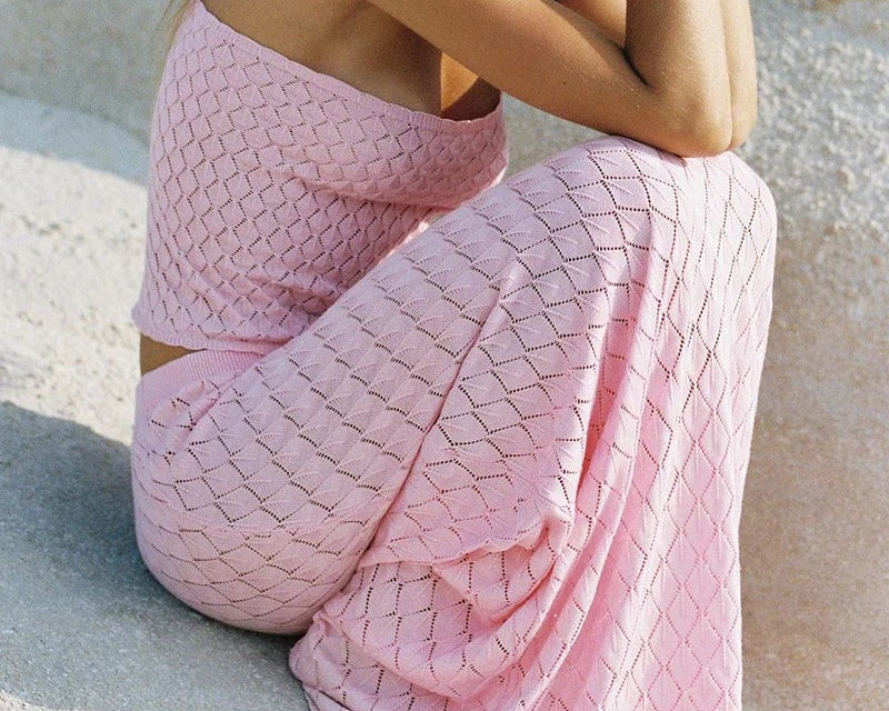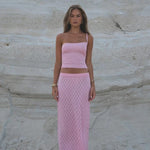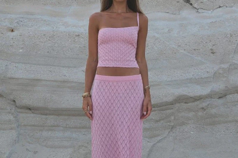 The Jessamy Dreamy Crochet Set redefines laid-back polish with its sculpted knit texture and modern shape. Featuring a bold one-strap silhouette and cropped hem, the top pairs seamlessly with the matching high-rise skirt to highlight your shape while keeping things airy. Whether you’re heading to a brunch or beachside stroll, this set brings easy charm with standout flair.