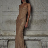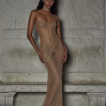 Step into high drama with the Jonquil Classi Sheer Gown — a bold yet refined masterpiece made to command attention. This strapless silhouette features sculptural collar detailing and a glowing sheer finish that drapes like liquid light. Whether you’re on the red carpet or center stage, Jonquil brings sculpted allure with an avant-garde twist.