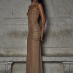 Classic sheer overlay: Glimmers subtly for a radiant, spotlight-ready glow.