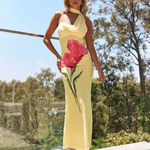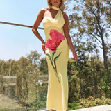Slip into the Junia Bloom Maxi Dress and let your style speak in soft motion and vibrant print. With its halter neckline and backless profile, this piece flatters from every angle while offering a breeze-ready silhouette. Ideal for garden gatherings or golden-hour strolls, it's made to catch the light — and attention.