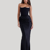 The Madilyn Refined Evening Dress is your go-to for creating a lasting impression at any formal event. With its sleek, strapless design and flowing silhouette, this dress is crafted to enhance your confidence and showcase your style. From weddings to galas, this versatile piece brings a perfect blend of classic charm and modern sophistication.