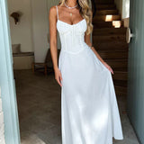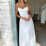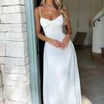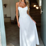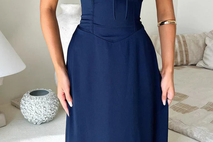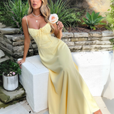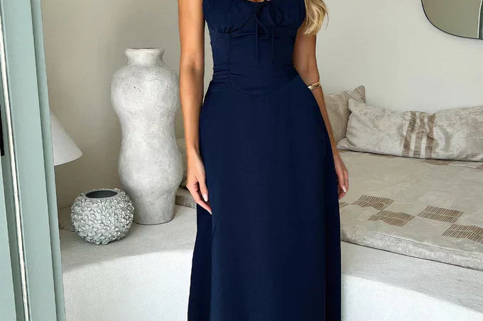 The Maisie Soft Meadow Gown channels an airy blend of poise and wanderlust. With its lace-up detailing and flowing silhouette, this dress is made for sun-drenched afternoons and starlit gatherings alike. The sleeveless cut adds a modern edge, while the long hem and subtle movement make every step feel like a quiet breeze.