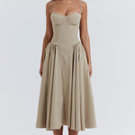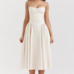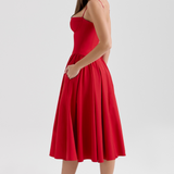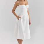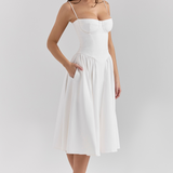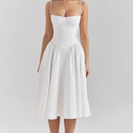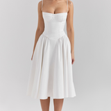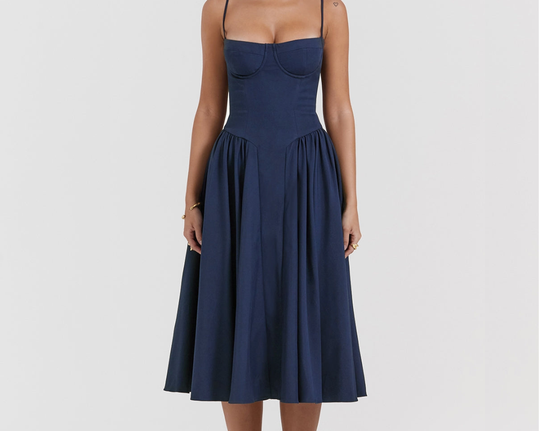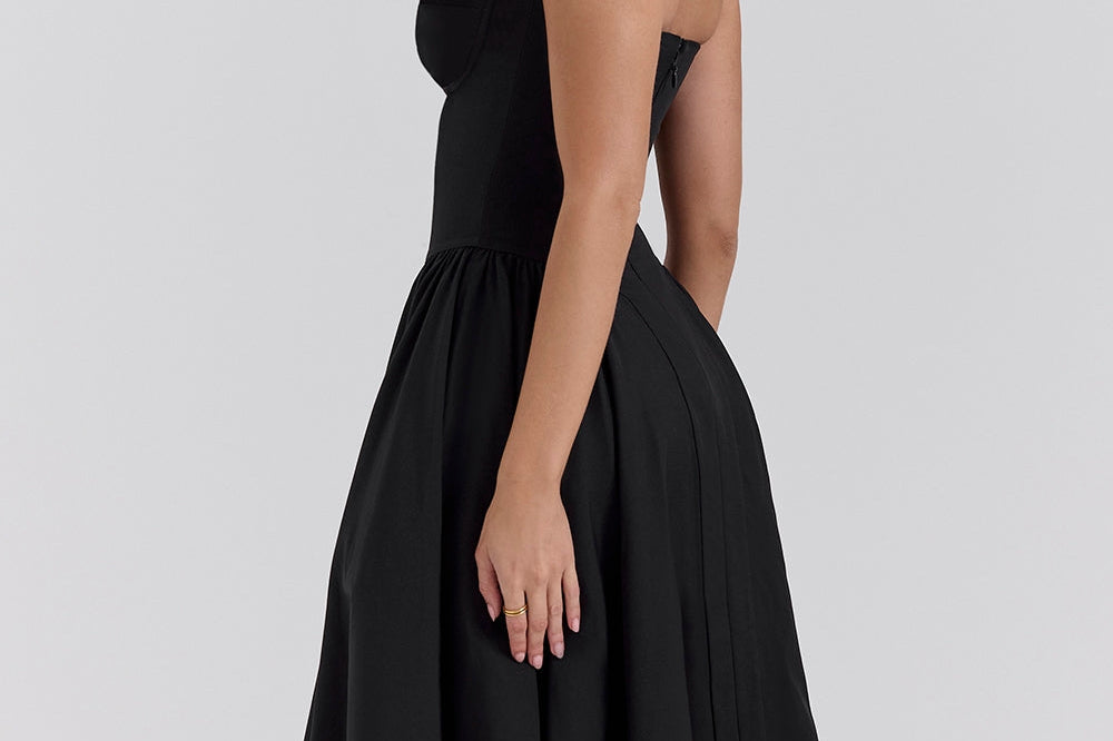 Let your silhouette speak volumes with the Nola Elegant Muse Dress — a midi-length piece that blends structure and softness with every detail. From the sculpted bodice to the flowing hem, this design is made to flatter your frame while offering a light, airy feel for warm-weather occasions.