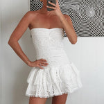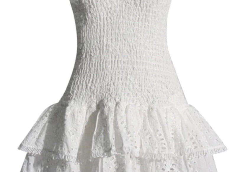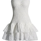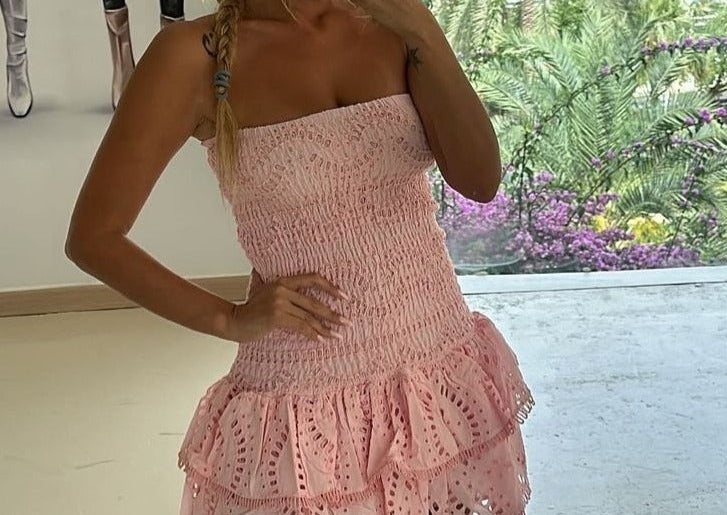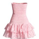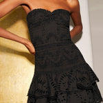 Embrace your inner diva with the Odalys Eyelet Dress — a stunning piece that beautifully marries classic charm with contemporary flair. This dress showcases a strapless design that highlights your shoulders, making it an ideal choice for any occasion where you want to shine.