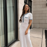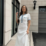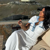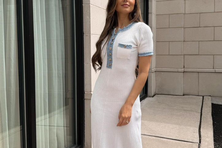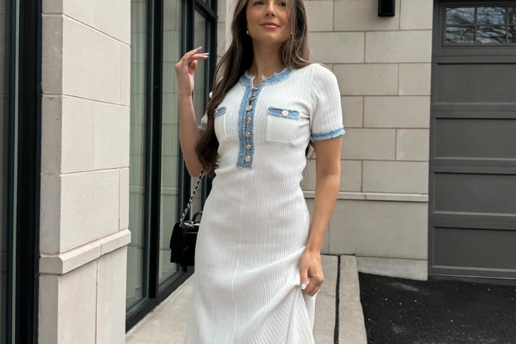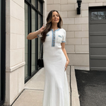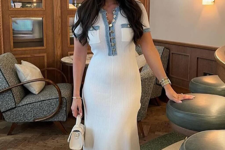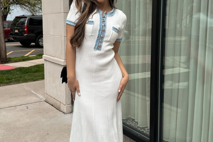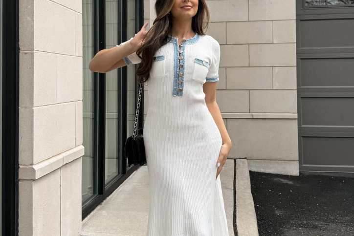 Full-length finish – A sweeping hemline anchors the look, ideal for relaxed refinement or elevated daytime style.