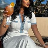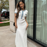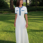 Chase the breeze in the Rhoswen Azure Collar Dress—a refined nod to coastal charm and quiet strength. With its structured neckline, flowing length, and intricate detailing, this piece brings together tradition and modern poise in one confident silhouette. Whether you're wandering cobbled streets or attending a daytime gathering, this dress draws attention with thoughtful balance.