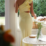 Brimming with sun-kissed flair and sharp detail, the Seren Dress turns every entrance into a moment. Its bold one-shoulder silhouette and sculpted side cut-out play with balance and shape, while the citrus-toned palette adds just the right amount of punch. Designed for twilight gatherings or seaside soirées, this piece captures warm-weather drama in the most refined way.