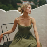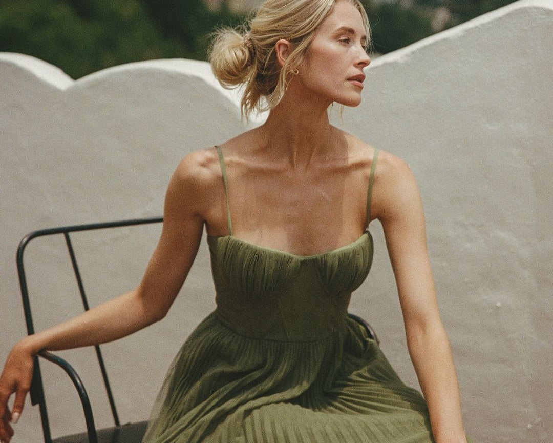 Bring fresh allure to every occasion in the Sidonie Olive Garden Gown — a structured yet romantic piece that channels botanical beauty with a modern twist. With its sculpted bustier bodice and soft tulle overlay, this gown captures a mood of quiet drama and refined form. Ideal for garden weddings, cocktail evenings, or artistic soirées.