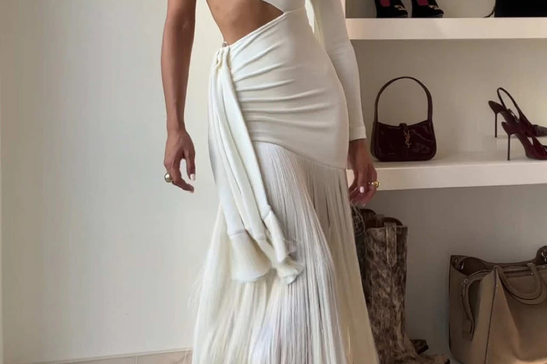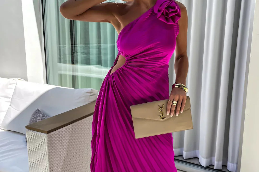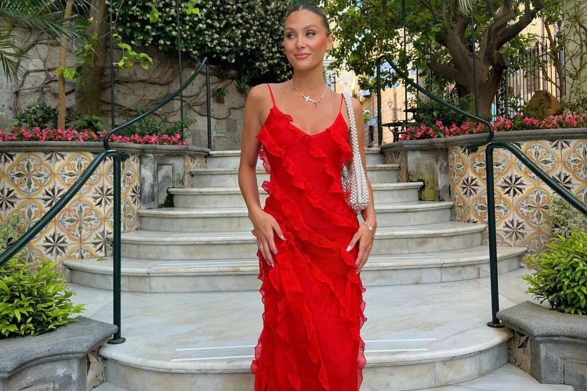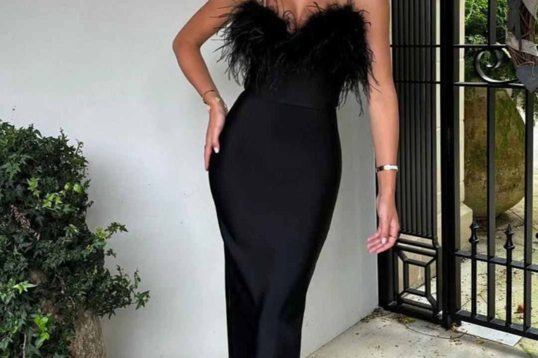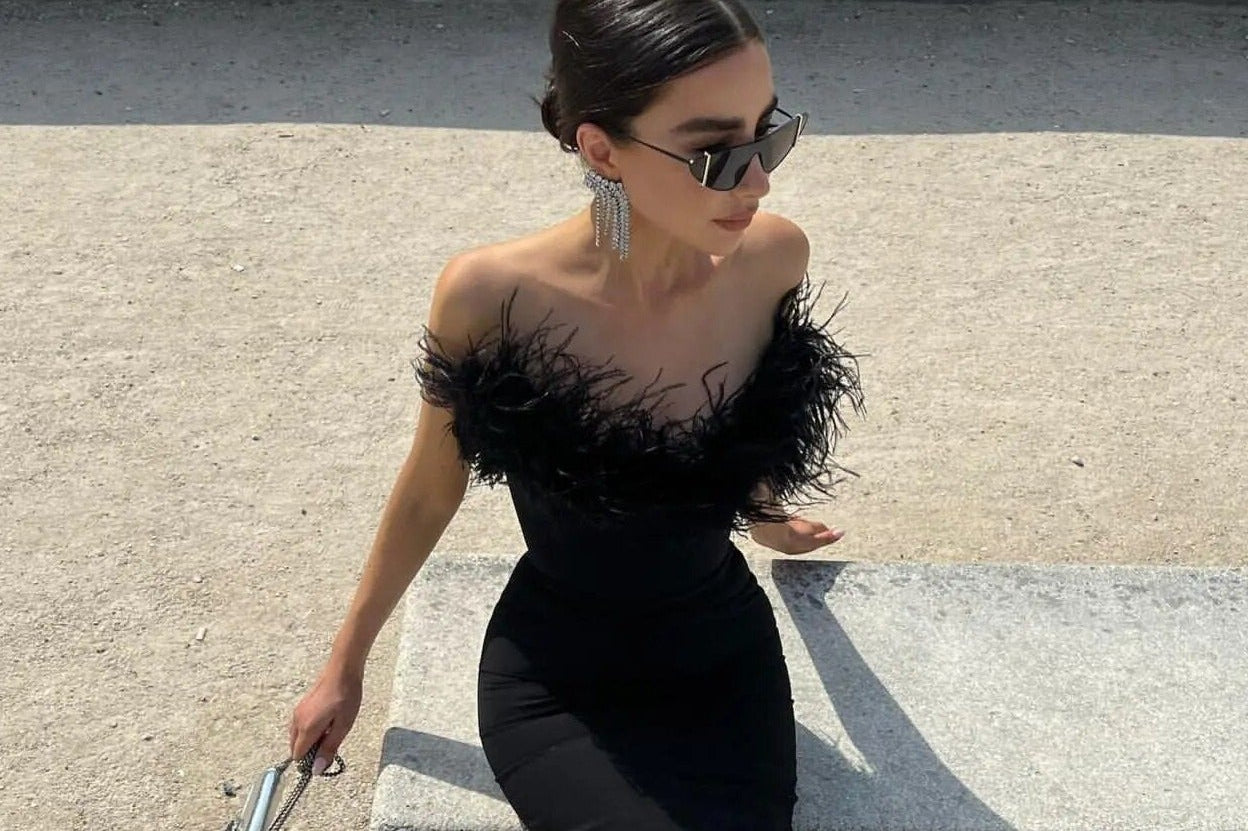 Mid-length hemline: Balances drama and movement with wearable flair.