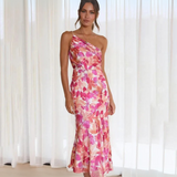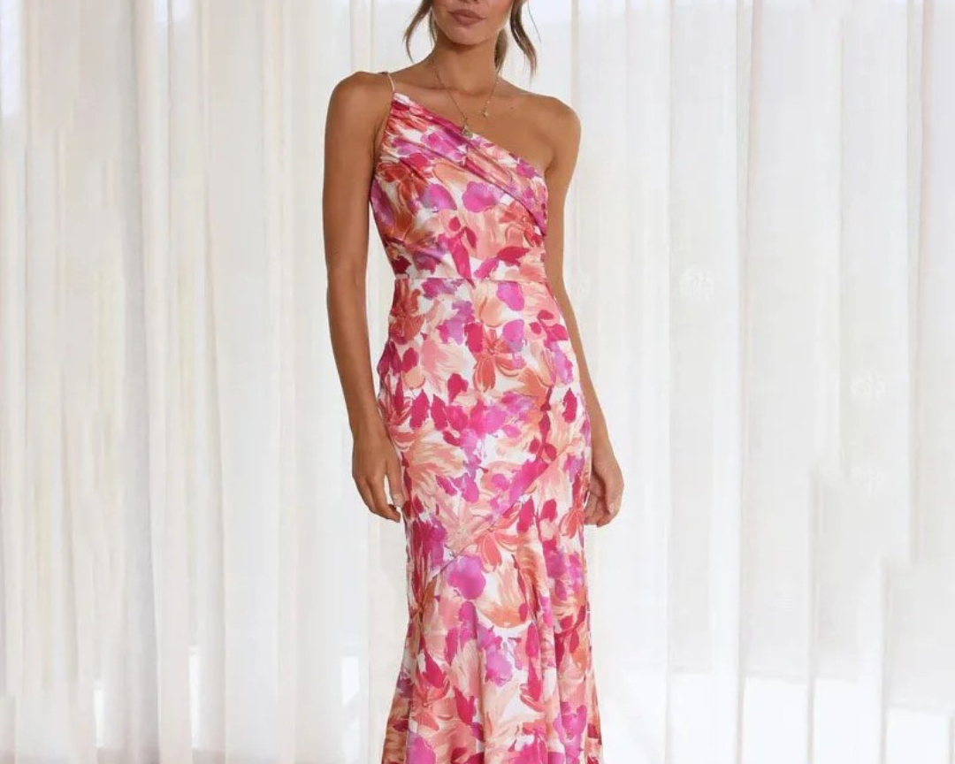 Bring the heat in the Zenobia Petal Flame Dress, a striking fusion of blooming prints and sculpted lines. With its one-shoulder silhouette and flared hem, this piece captures movement and confidence in one bold sweep. Whether it’s a garden soirée or a beachside dinner, this dress delivers visual drama with a playful twist.